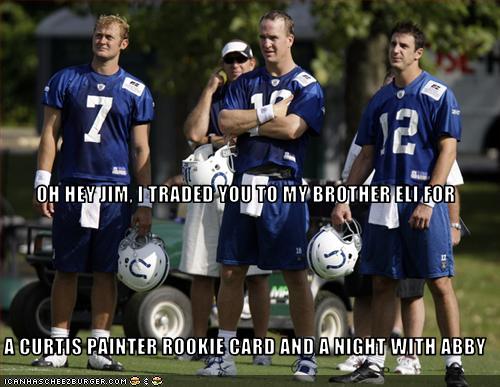Seriously, the poor guy has spent so much time behind Gayton Peyton Manning you would think he was Dallas Clark’s tumescent penis. His career in Indianapolis ends with a shoulder injury, and next thing you know, he gets to back up the Manning brother who isn’t a closet case.