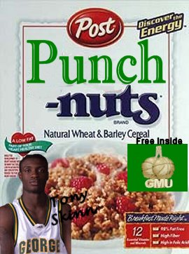 If you don’t recall, Mason’s improbable run in 2006 began with Skinn serving a one-game suspension for attempting to crush the manbits of Hofstra forward Loren Stokes. In another showing that some things never change, Skinn is shown here using the flesh balloon of some poor European as a launch-pad to a rim-hanging thunderdunk.