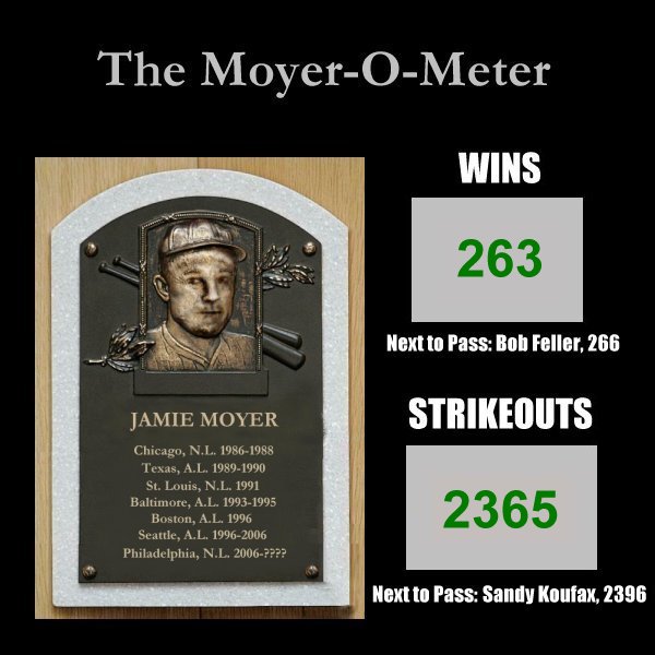 However, despite being touched up for three home runs, Moyer still notched a win and collected three more strikeouts, continuing his ascent in the record books.