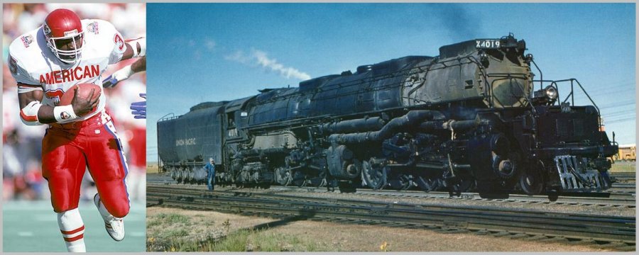 The “Big Boys” were the only locomotives to have the 4-8-8-4 wheel arrangement, combining two sets of eight driving wheels with both a four-wheel leading truck for stability entering curves and a four-wheel trailing truck to support the large firebox. This also explains Okoye’s configuration; while humans are limited to two “driving wheels,” Okoye rolled like he had multiple sets. The “Big Boys” were specifically designed to pull a 3,600 ton freight train over the long 1.14% grade of the Wasatch Mountains in Utah. Christian Okoye was drafted to plow through the defenses of the AFC West.