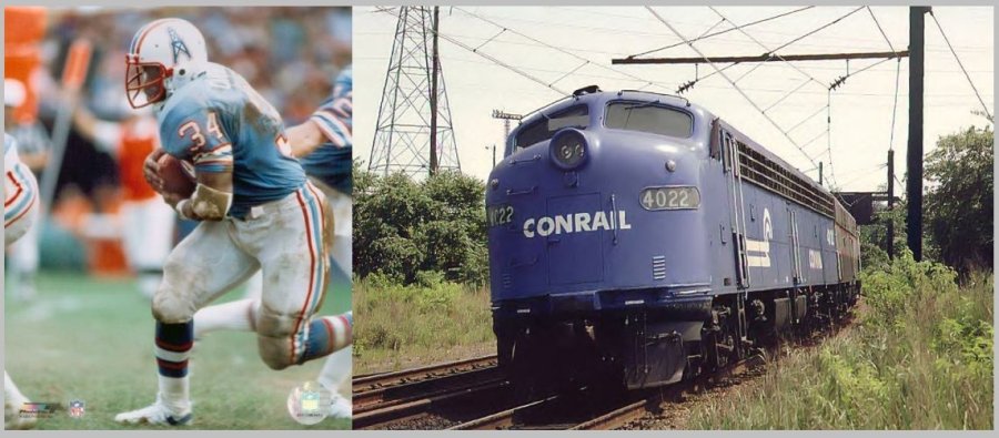 The E8-A and Earl Campbell were both the perfect combination of power and speed. Campbell really was just a flesh-and-bone locomotive; he ran like hidden somewhere in his massive thighs the actually was an E8-A with its 2,250-horsepower engine geared for running at 117 miles per hour.