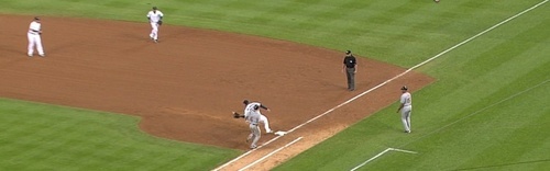 To the amazement of everyone watching, Jim Joyce ruled that Cleveland’s Jason Donald had actually just beaten Galarraga to the bag after hitting a grounder to the right of Tigers first baseman Miguel Cabrera. You didn’t need the replay except as validation, it was simply a blown call made at the end of a game. How many perfect games got snuffed by a bad call in the third inning? Nobody knows because nobody pays attention to such an event until the seventh.