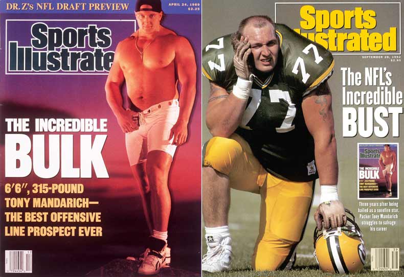 Or as I like to call him, the George Washington of the steroid era; Mandarich was the first guy to bring performance enhancing drugs to the forefront in big-time American sports. The Packers ignored all the warning signs surrounding this horse-juice pin-cushion when they wasted the second overall draft pick on him in 1989. Sure, he may have been a physical specimen, but the rumblings were out there his physique came courtesy of the syringe; he may have been a first-team All-American, an Outland Award finalist and a two-time Big Ten Lineman of the Year, but he was also a first-class tool. This was evidenced by his challenging then-heavyweight boxing Champion Mike Tyson to a fight, and constantly missing scheduled public appearances due to being drunk or hungover.