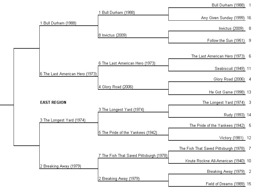 With that, here are the Sweet Sixteen match-ups…Which will be the first #1 to fall? You make the call; voting will be open until next Monday at midnight.