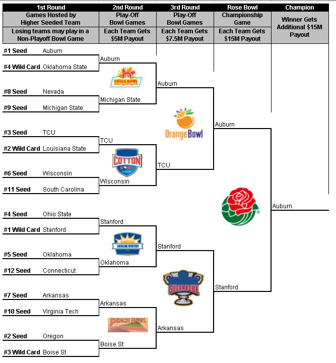4. Its very detailed and yes some excellent points. However LSU will never leave the SEC no matter the money. I do like the bracket system though. That could work. And this is better than the BCS that’s for sure.