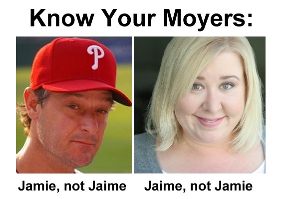 FACT: You need to be careful when doing a web search for “Jamie Moyer.” A simple typo can lead you to a comedian named Jaime Moyer.