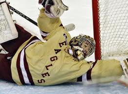 The Eagles took back a 2-1 advantage in the first period on Paul Carey’s power play deflection with nine seconds remaining on a Ferris State penalty.  While the final score ended up being 4-1, the last two Eagles’ scores were irrelevant because of the stellar play of Eagles’ goalie Parker Milner.  Milner was named the Most Outstanding Player in the Frozen Four on the strength of his 27 saves against the Bulldogs and the fact that during the entire tournament he notched 110 stops while only allowing two goals in 240 minutes.