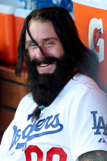 LOS ANGELES, CA – OCTOBER 15: Brian Wilson #00 of the Los Angeles Dodgers sits in the dugout before the Dodgers take on the St. Louis Cardinals in Game Four of the National League Championship Series at Dodger Stadium on October 15, 2013 in Los Angeles, California. (Photo by Stephen Dunn/Getty Images)