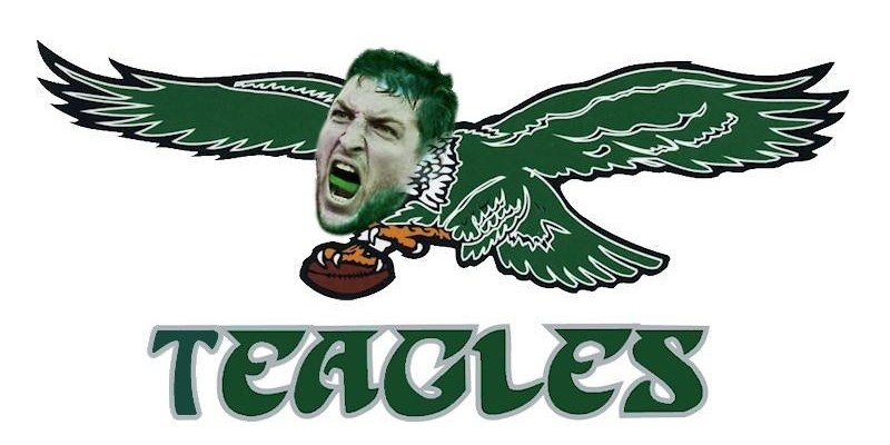 Point #2: The Eagles have nothing to lose on this. Think about it. If Tebow proves he still can’t hack the NFL game, they’re going to know that long before it really costs them anything. But if it pays off, not only do the Eagles get a proven NFL winner as a third-string quarterback; let’s not forget, the Teb-ster took the helm of a 3-5 Bronco team and got them into the play-offs, and led them to a win over a pretty-damn-good Pittsburgh team in the post-season. Before you poo-poo that, take a look at the average resume of an NFL third-stringer. Almost none of them have any real on-field experience past the college days.