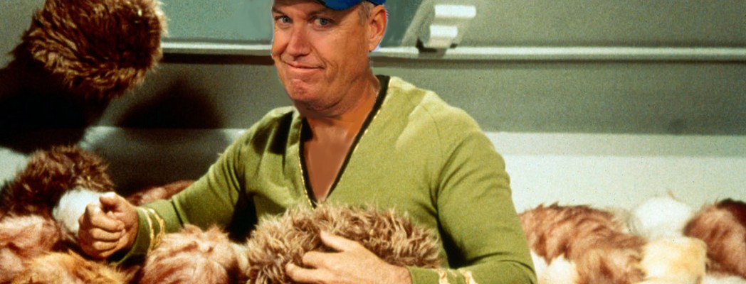 The first thing Captain Sexy Rexy would do is convince you Star Fleet is better than it really is by gorilla-stomping the Klingons, then would come crashing back to earth by getting butt-housed by the Tribbles. He would also name a “red shirt” as his quarterback, then bawl about injuries when that guy gets melted by a Romulan death ray. There’s also a cameo for his brother Rob as “Scotty,” who is screaming “The shipp canna-take-a no morrrrrrrrrre-a!” as the Enterprise is bombarded by what at first seems to be an asteroid field, but actually turns out to be giant, intergalactic penalty flags thrown by Hochuli, Lord of the Zebrons. We can even work in the Ryan brother’s dad Buddy as the cantankerous Dr. McCoy, who says things like “Damnit Rex, I’m a doctor, not a …Wait, I’m not a doctor either. What the hell am I? Ahhhh, fuck it…gimme another scotch.”