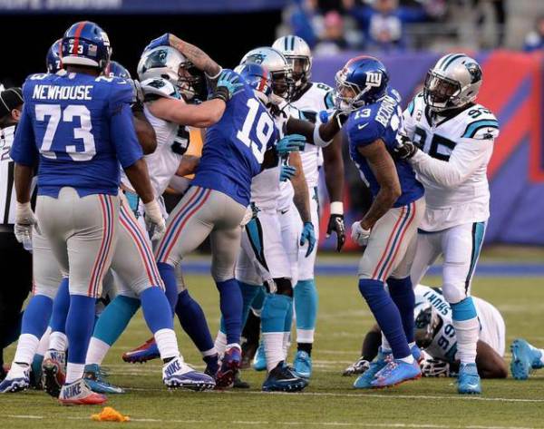 Obviously there’s an elephant in the room, and that zoo animal is the one game suspension handed down by the NFL to New York Giants wide receiver Odell Beckham after a helmet to helmet hit on Carolina Panthers cornerback Josh Norman in Sunday afternoon’s game. The helmet-to-helmet hit did warrant the suspension, but what I’m going to talk about for a second is the way the media covered all of the other stuff that was going on between those two before and after the whistle. A lot of people are crying about the lack of sportsmanship associated with these exchanges, and – simply put – those people need to shut the fuck up. Given the Antonio Brown scuffle in the previous week’s Bengals/Steelers game, this is the second week in a row that I’ve had to write about grown men slapping…