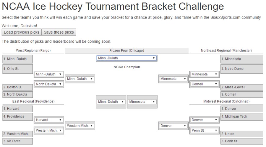 That brings us to the moment of truth – the official Dubsism NCAA Frozen four bracket.