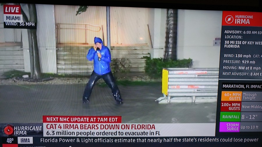 I saw it this very morning as I flipped on my TV to check on the situation Hurricane Irma is posing for my Floridian friends such as my blog brother SportsChump.  I hadn’t even “Irished up” my first cup of coffee on the day when I was treated to this vista.