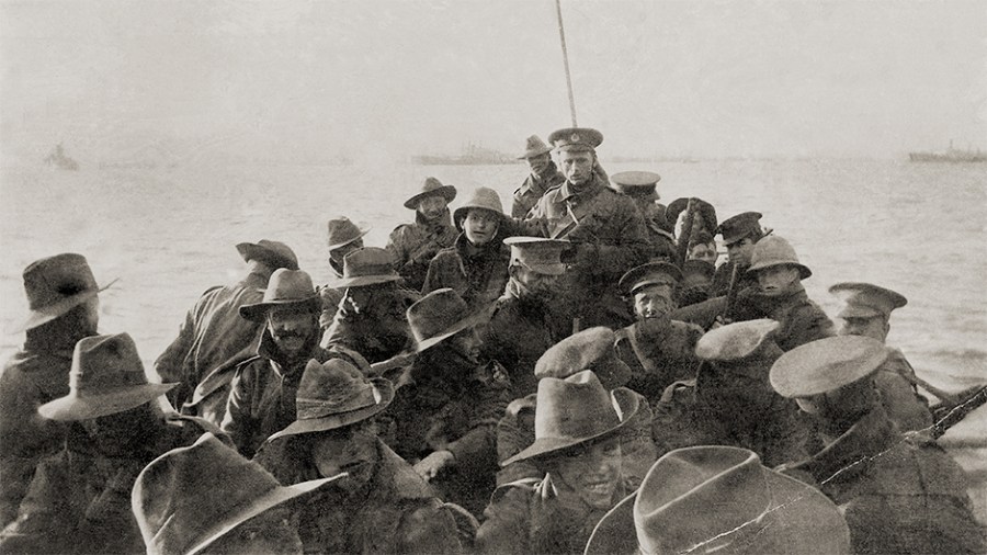 The campaign at Gallipoli in 1915-1916 was a disastrous attempt by the Allied Powers to control the sea route from Europe to Russia during the First World War. The campaign began with a failed naval attack spanning February and March 1915 by the British and French on the Dardanelles Straits in modern-day Turkey. This was followed by a major sea-borne invasion of the Gallipoli Peninsula on April 25, 1915. This force was comprised of nearly half a million Allied troops from Britain, Ireland, France, Newfoundland, India, Australia, and New Zealand. Facing them was a contingent of 300,000 soldiers from the Ottoman Empire and Germany.