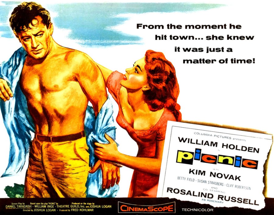 We came to this movie as a result of the first film Blog-A-Thon in which I participated. The subject of said Blog-A-Thon was William Holden. I’m quite familiar with a large part of Holden’s filmography; my contributions were Stalag 17 and Network. But “Picnic” proved to be a popular choice amongst my fellow Blog-A-Thoners.