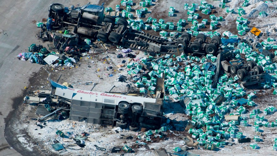 On April 6, 2018, sixteen members of the Humboldt Broncos were killed and thirteen more injured when a bus carrying the team in the Saskatchewan Junior Hockey League (SJHL) collided with a semi at an intersection Armley, Saskatchewan, Canada. All across the hockey world, the crash prompted an outpouring from celebrities, politicians, athletes, and fans. A GoFundMe campaign raised over $15 million.