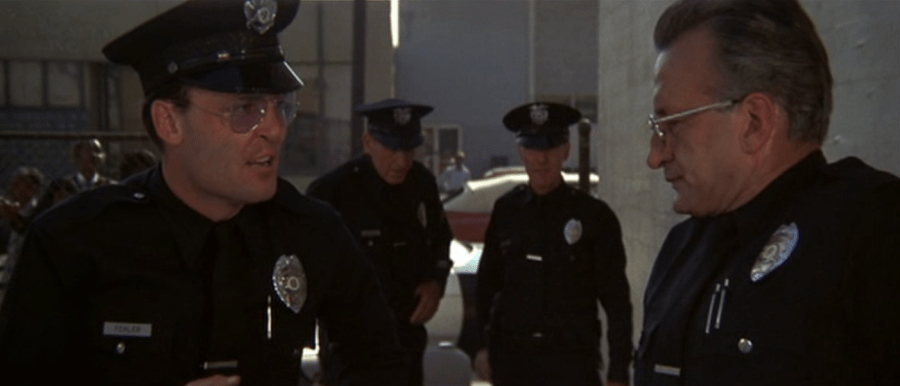 While the relationship between Fehler and Kilvinski grows, Fehler’s marriage begins to fall apart.  Dorothy Fehler (played by Jane Alexander) becomes disillusioned with Roy’s increasing love of being a cop.  As a result, he neglects his family and drops out of law school. A major turning point occurs during a convenience store holdup when Roy tells a couple in an illegally-parked car to move.  The problem he doesn’t realize this is the “get-away car” for the robbery, and he ends up taking a shotgun blast.