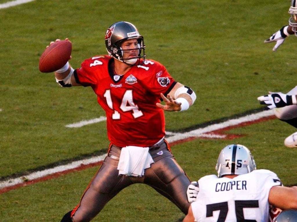That’s your last Super Bowl-winning quarterback. Bucs fans. He’s Brad Johnson, and if there were a Dubsy Award for being in the right place at the right time, it would have his name on it. In the midst of stumble-fucking his way through 15 seasons as an NFL quarterback in other places like Minnesota, Washington, and Dallas, he managed to be a Buccaneer when Jon Gruden took Tampa to the top of the football mountain in 2002. If Tom Brady and the Buccaneers win on Sunday, “Mr. Forgotten Quarterback” gets relegated to “Mr. Even More Forgotten Quarterback.”