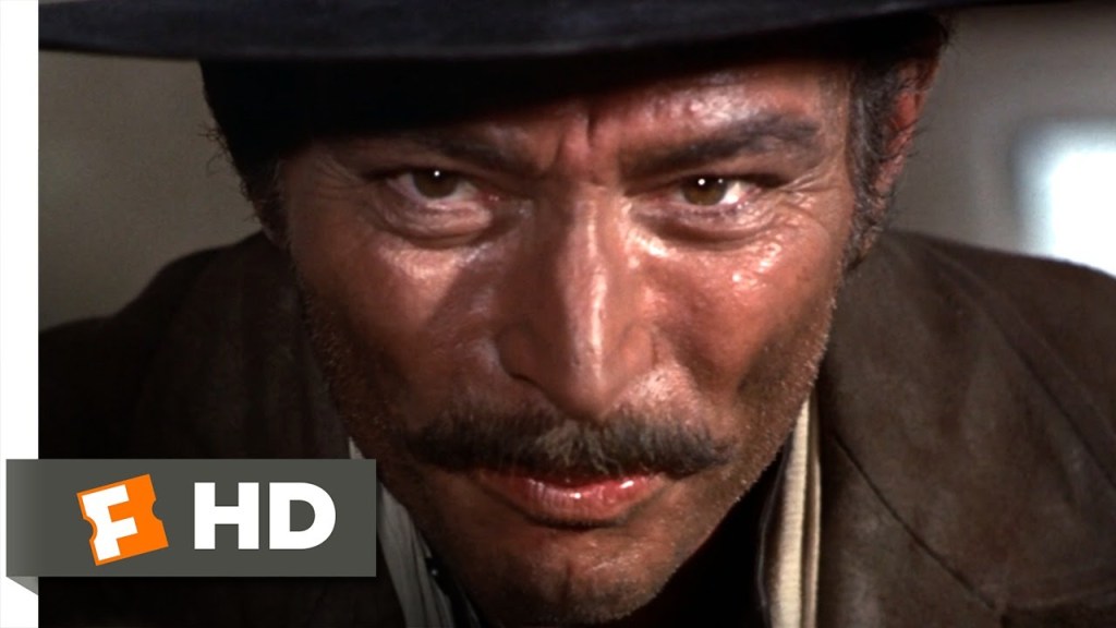 The is first Tuco (played by Eli Wallach). Tuco is “The Ugly” who is a wanted man with bounties on his head for a host of crimes. Tuco has a partnership with a drifter known only as “Blondie” (played by Clint Eastwood). “Blondie” represents “The Good” from the title trifecta. On the one hand, “Blondie” rats out Tuco for the reward money, but then saves him from being hanged. That leaves “The Bad” to complete the troika; this is provided by a character called “Angel Eyes” (played by Lee Van Lee Van Cleef).