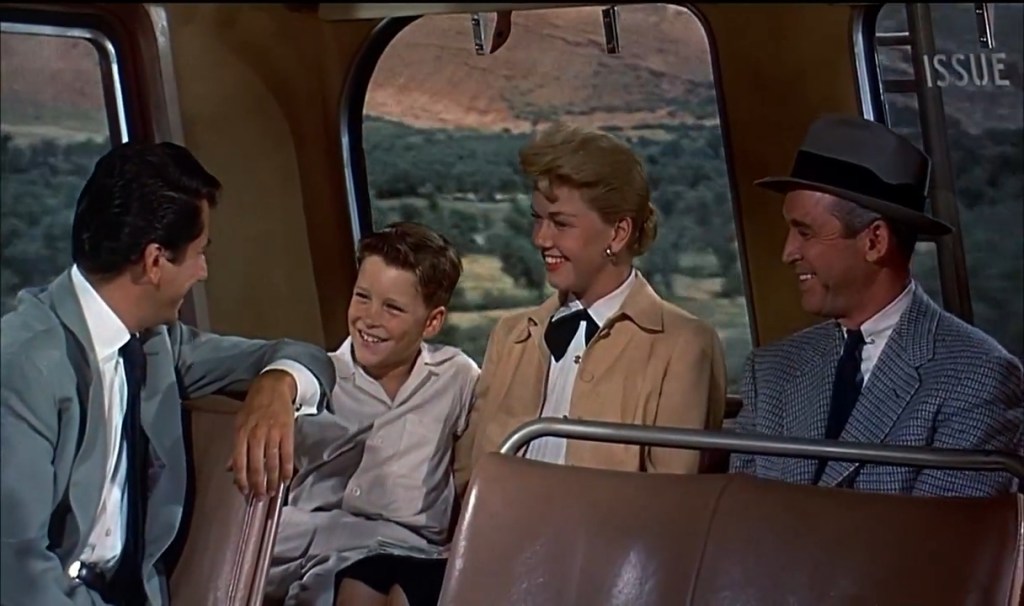 The story starts while the McKennas are traveling on a bus to Marrakech when Hank accidentally pulls the veil off a Muslim woman. What could have easily become a very serious problem is headed off when French national Louis Bernard (played by Daniel Gelin) steps in to aid the McKennas’ behalf. However, while Ben McKenna is trusting of the assisting stranger; he’s more than happy to divulge details about his families’ travel plans, Jo McKenna is suspicious of the Frenchman’ and his constant questions.