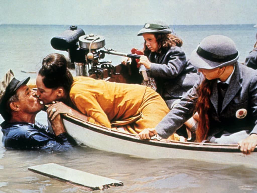 Expecting an American submarine to be waiting for them beyond the reef, Walter devises an escape plan using his freshly-repaired boat as a decoy while the girls and Catherine make their way past the reef in the same launch in which he brought them to the island. The Japanese patrol boat which carried the landing party fires at the launch, but is distracted by Walter racing past them in his boat. The Japanese give chase; they unknowingly head straight into the aim of torpedoes from the American submarine, but not before their gunfire explodes Walter’s boat into matchsticks. With little hope, the submarine commander gives the order to surface and look for survivors…but is pleasantly surprised with what he discovers.