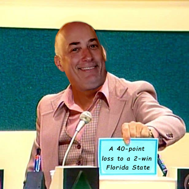 The problem is that I suspect the Chump is too close to Florida football to see the last thirty years have been like one long episode of Let’s Make a Deal. Just like when you watch somebody dressed as a ear of corn swap a brand-new car for a goat, you could see the warning signs Gator fans always miss when they trade an SEC Championship for a homecoming loss to Vanderbilt.