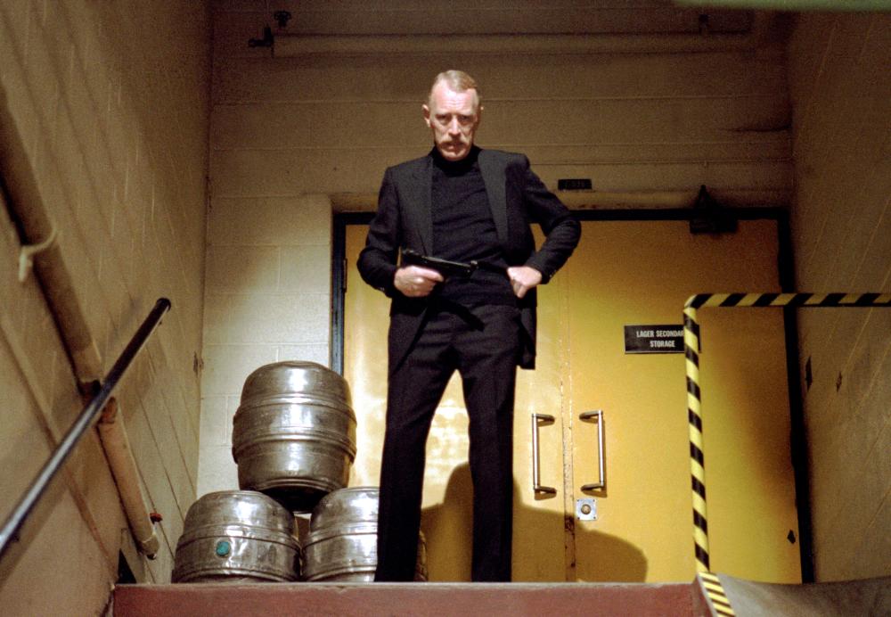 While our “would-be” suds swindlers are supposedly placated, we are introduced to the antagonist. Elsinore’s Brewmeister Smith (played by Max von Sydow) is actually an evil genius who is hatching a plan for world domination by infusing Elsinore beer with a mind-control drug which simultaneously renders the drinker docile but will become a killer on command when certain musical tones are played.