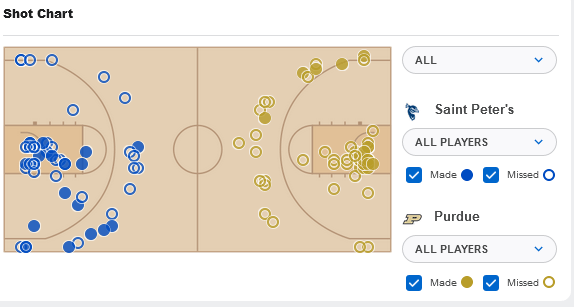 But what’s really telling is how many shots St.Peter’s missed inside and still won this game. The only reason they got that many close looks is Purdue simply refused to press it’s size advantage under the glass. How else did St. Peter’s double-up on Purdue in blocked shots (4-2)?