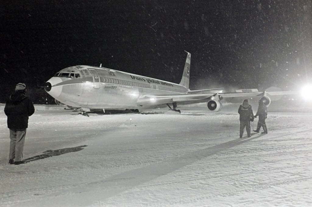 Because of the blizzard, a Trans Global Airlines (TGA) flight crew miss a turn onto a taxiway from Runway 29. As a result, the big Boeing 707 Strato-liner gets stuck in the snow, which renders the runway unusable to other aircraft. This will prove to be a problem since 29 is Lincoln’s longest runway, making it the strip of choice in bad weather and emergencies.