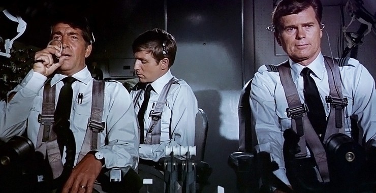 Meanwhile, another TGA Boeing 707 is preparing for departure to Rome. Onboard are Captains Vernon Demerest (played by Dean Martin) and Anson Harris (played by Barry Nelson). Demarest is on this flight as he is a “check-ride” captain; meaning he’s there to evaluate Harris’ performance. But the real drama on this flight comes from the fact Demerest is married to Bakersfeld’s sister, yet he’s been canoodling with chief stewardess Gwen Meighen (played by Jacqueline Bissett). Of course, this is the moment she picks to tell Demerest she’s carrying their “love child.”