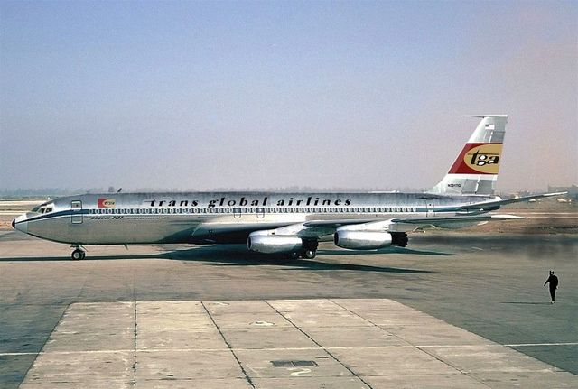 During the making of Airport, only one Boeing 707 was used: a model 707-349C, “November” number N324F, which was leased from the cargo carrier Flying Tigers. It’s livery for the film consisted of an El Al “cheat line” over its bare metal finish, with the fictional Trans Global Airlines (TGA) titles and tail. This aircraft served several carriers until March 21, 1989 when it was destroyed in crash while making an approach into São Paulo, Brazil’s Guarulhos Airport (IATA code GRU). At the time, this aircraft was in service as a cargo ship for carrier Transbrasil. The crash killed all three crew members and 22 people on the ground.