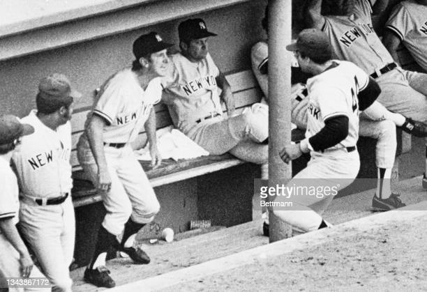 The most famous example came during a Saturday NBC Game of the Week between the Yankees and the Red Sox in Boston. At one point in that game, manager Billy Martin became enraged at his star right-fielder because he felt Jackson didn’t hustle “hard enough” after a ball hit toward him. Martin called Jackson into the dugout; taking a player out of the game in the middle of an inning is an extremely unusual move. It took no time for the already-hot tempers to erupt into an unforgettable moment…all caught on camera.