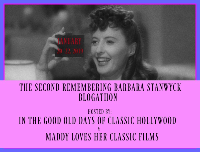 The Second Remembering Barbara Stanwyck Blog-A-Thon: Hosted by In The Good Old Days Of Classic Hollywood and Maddy Loves Her Classic Films.
