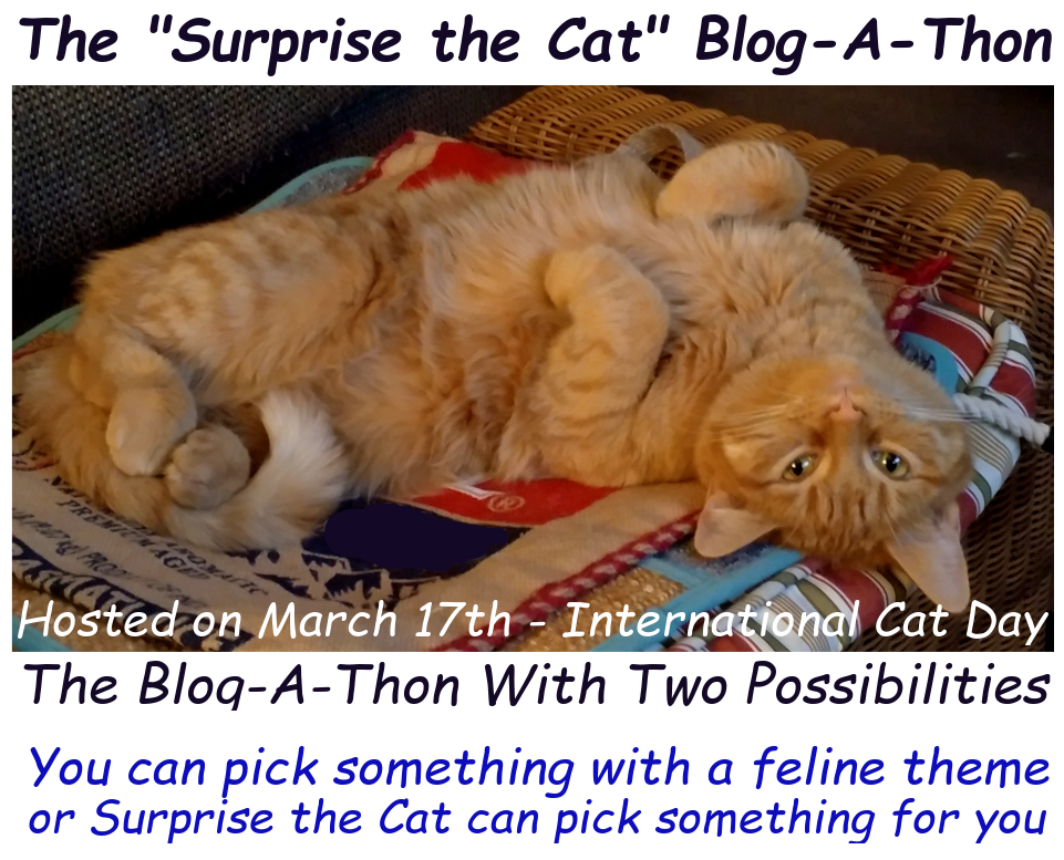 The “Surprise The Cat” Blog-A-Thon: In honor of International Cat Day on March 17th, this blog-a-thon is being directed by the official Dubsism house-cat, who happens to be named Surprise from the day she ran out from under a bush in our back yard and adopted us. Obviously, this is about films with a feline theme, but the “surprise” aspect is if you feel lucky, you can tell us an actor or a genre of film, and Surprise the Cat will send you a movie to write about – Hosted By Dubsism