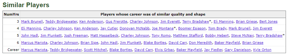 Here’s the proof. Just look at the comparisons Pro-Football Reference made for Kaepernick. At first, there’s some favorable examples, but those are long gone by the self-imposed end of his playing days.