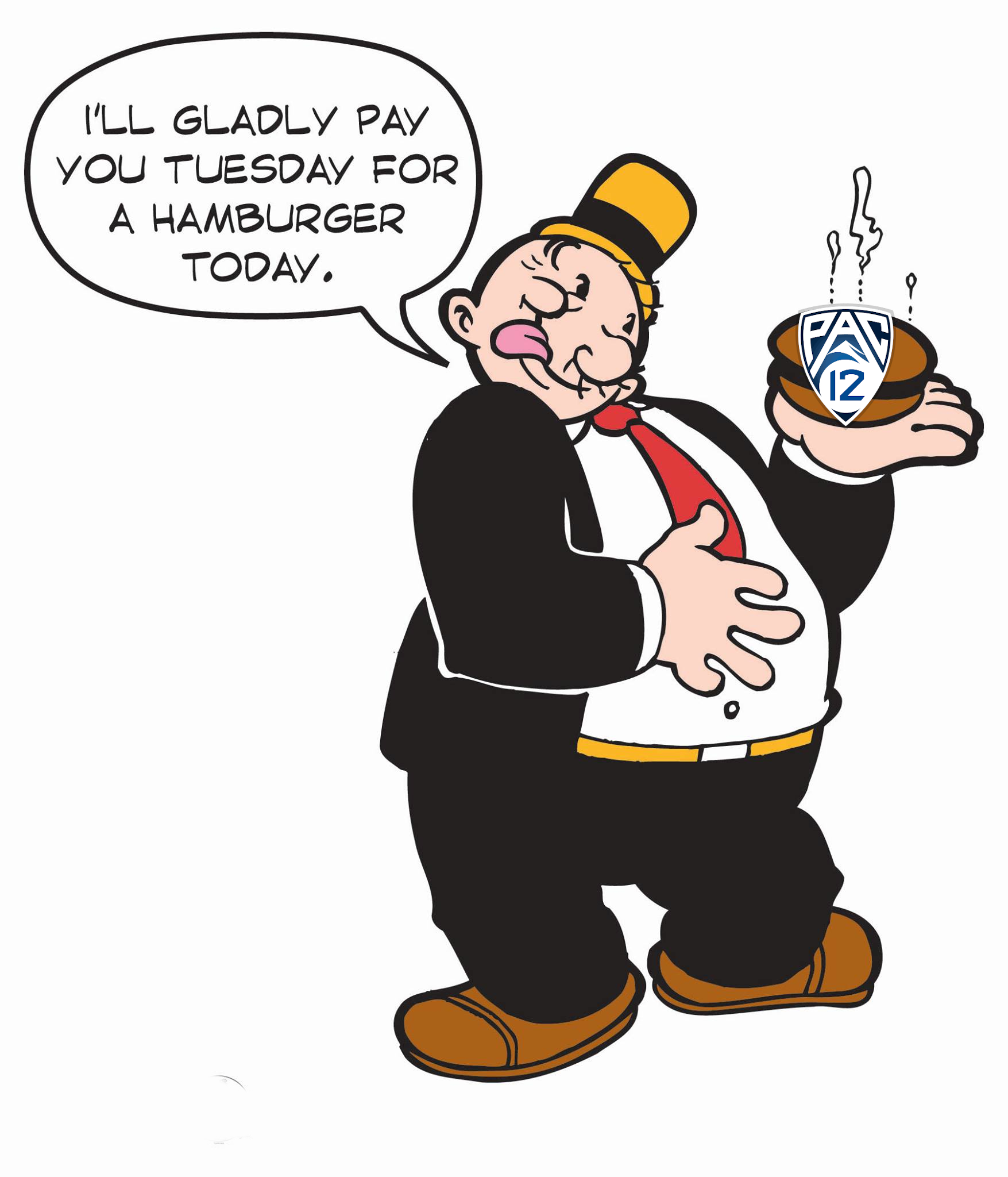 The date stamp on that X/Tweet is important. 2022 is when the winds of change starting blowing in the direction of a mass exodus of Pac-12 members. But the rumbles of troubles pre-dated that. In 2021, the Pac-12 athletic directors became of then-commissioner Larry Scott because he was not coming through on his promises of new and big television contract money. Scott continued to go full “Wimpy” on the league’s ADs; always promising to come across with money later for football today.