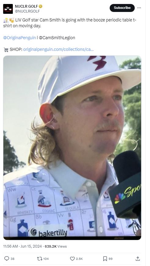 It’s a safe bet alcohol played a role in this exhibit of extra-marital carnality, which is why we believe LIV golfer Cam Smith was doing his bit for education with his “periodic table of booze” shirt.