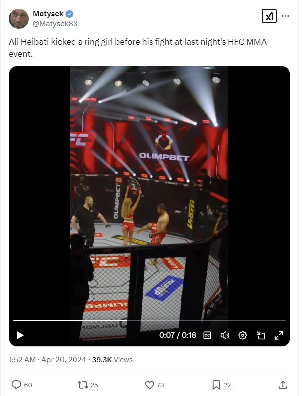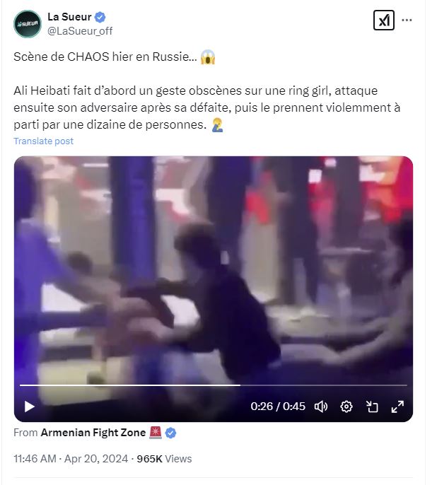 Seemingly incensed by this display, Arkady Osipyan took only half-a-minute to flatten Heibati. But just because the fight was over, don’t think the same applies to Heibati’s shenanigans. According to all accounts, he took a cheap shot at Osipyan while he was walking back to his corner, and tried to kick the ring announcer before Osipyan shit-hammered him again.