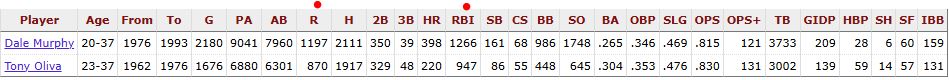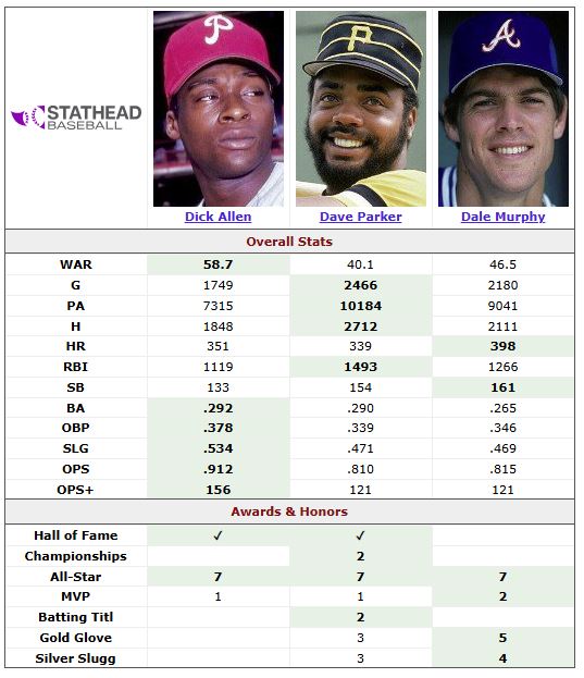 Draw your own conclusions. But it would seem a case can be made at the very least for Dale Murphy over Dick Allen…especially when it comes to our two most valuable numbers.