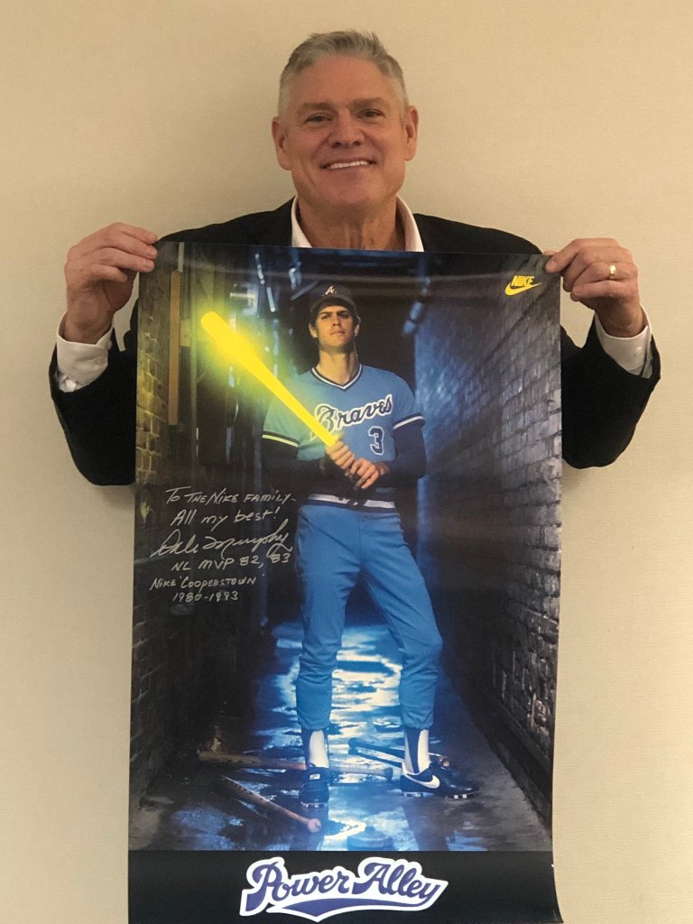 Some of the kids yelling “MURPH!” were clad in Dale Murphy t-shirt “jerseys.” They were the same ones who had his Nike poster on their walls and imitated his long, loping stride tracking down a fly ball in center field…even if they only needed two steps to corral a grounder at second base.