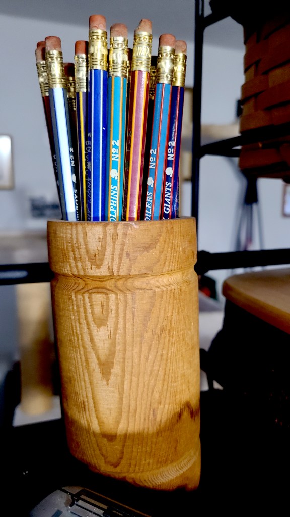 The incomplete nature doesn’t matter. In a sense, it fits the fact the erasers on some of the pencils are falling apart. Sometimes, sentimentality trumps perfection.