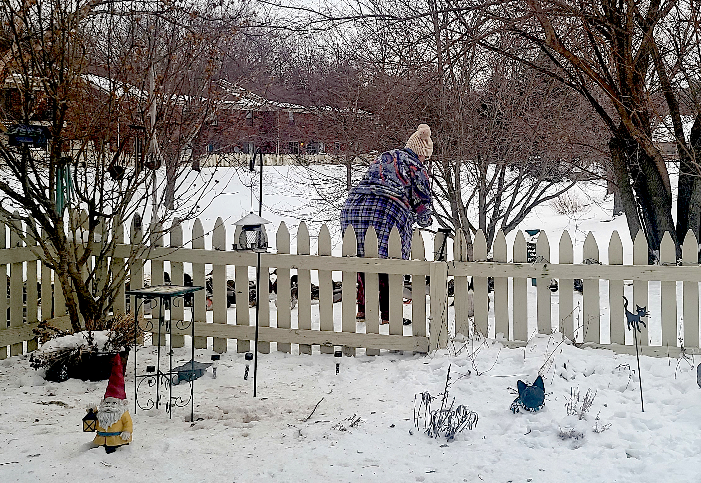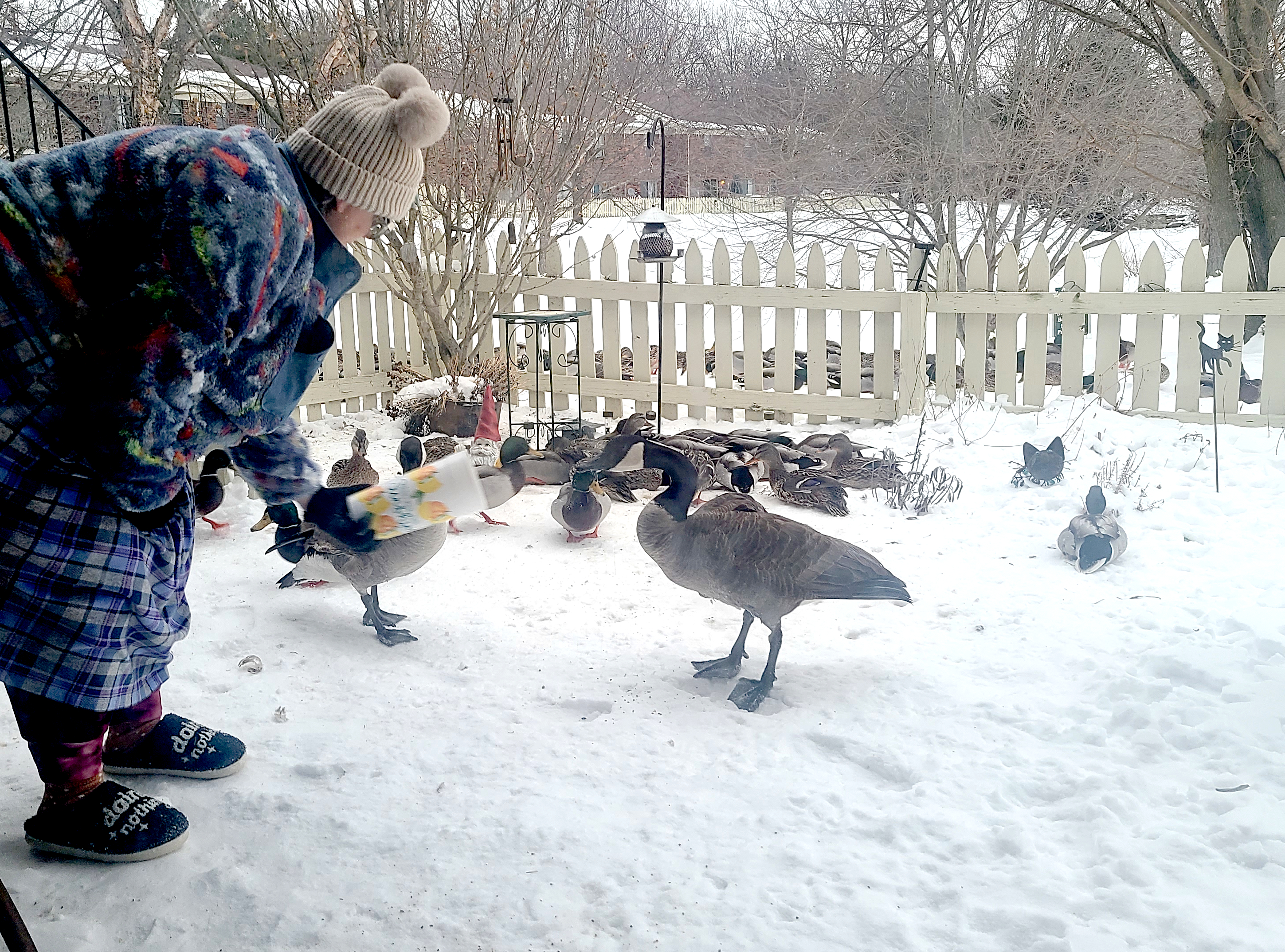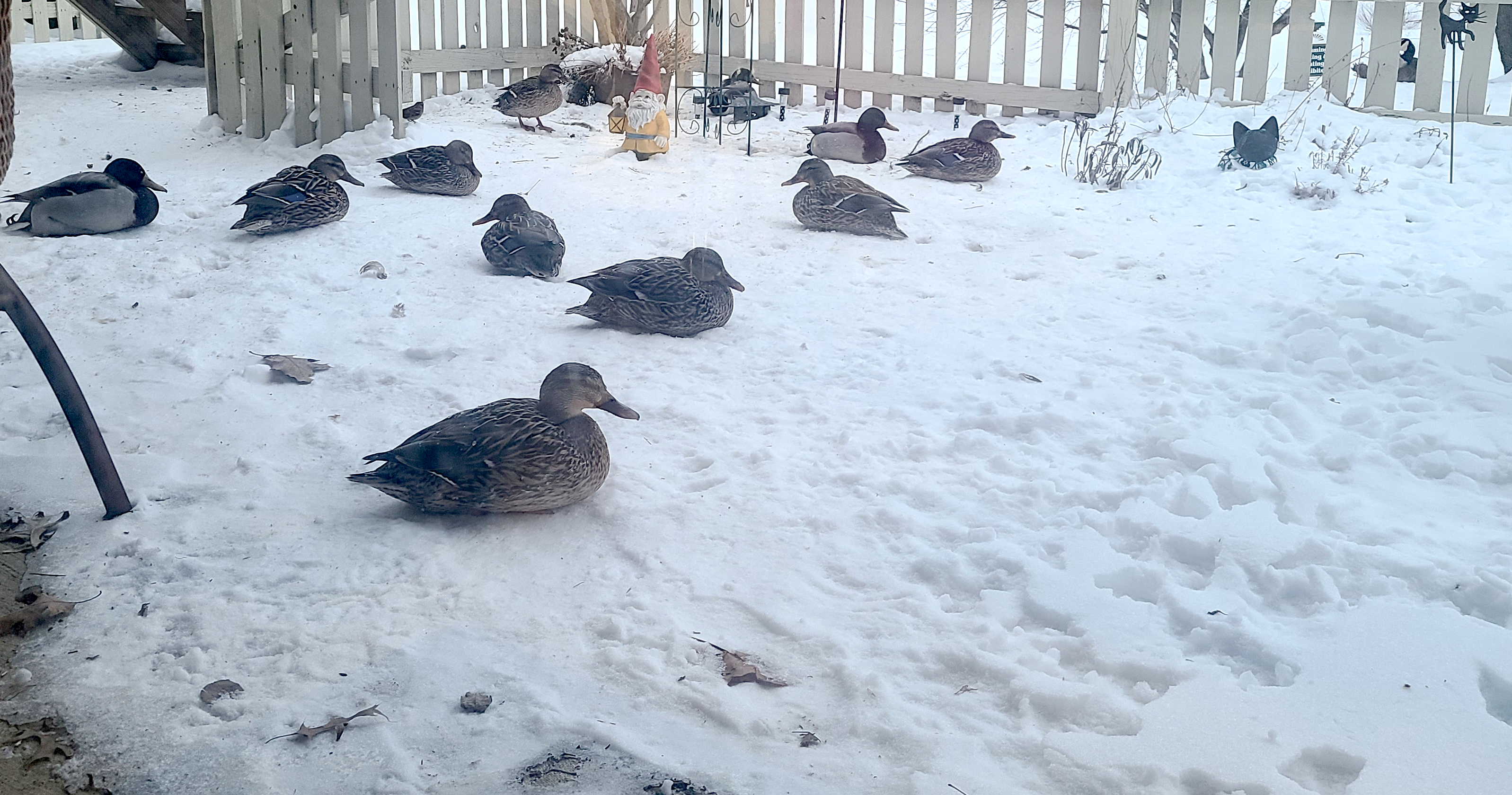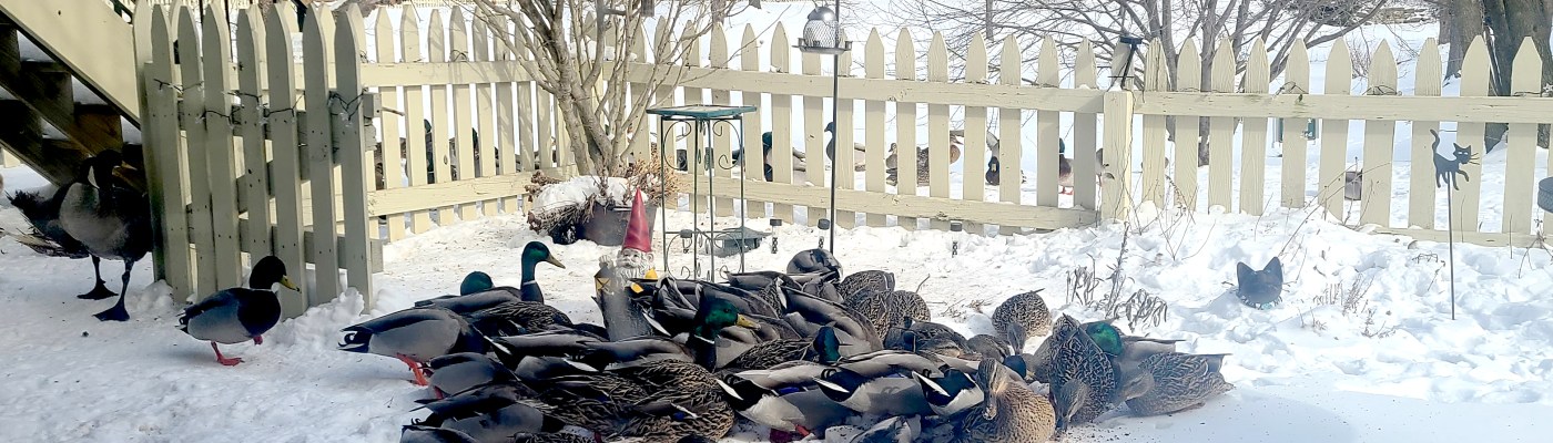 Yesterday is what happens when you live with an animal lover in a place that has wildlife. Granted 95% of said “wildlife” is comprised of ducks and geese who normally would be hanging out on a golf course, except for the fact they found the pond-adjacent backyard now known as “Mrs. J-Dub’s Eco-system.” Despite the garden section lying in it’s winter dormancy, the “air wing” of that eco-system is still quite active. All the evidence one would need waddles in every afternoon for “refueling.”