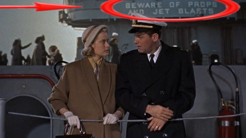 Now…for the “how does Grace Kelly end up in this movie” part. The USS Savo Island has to return to it’s home port in Japan before it can carry out it’s next assignment. At the same time, Brubaker finds out that his wife Nancy (played by Grace Kelly) and their children have arrived in Tokyo on an unexpected visit. Tarrant gives him three days liberty in Tokyo, but the Brubaker family reunion gets raided by reality. Nestor Gamidge knocks on Brubaker’s hotel room door pleading for help rescuing Forney from the clutches of the shore patrol after the pugnacious pilot had another of his infamous brawls.